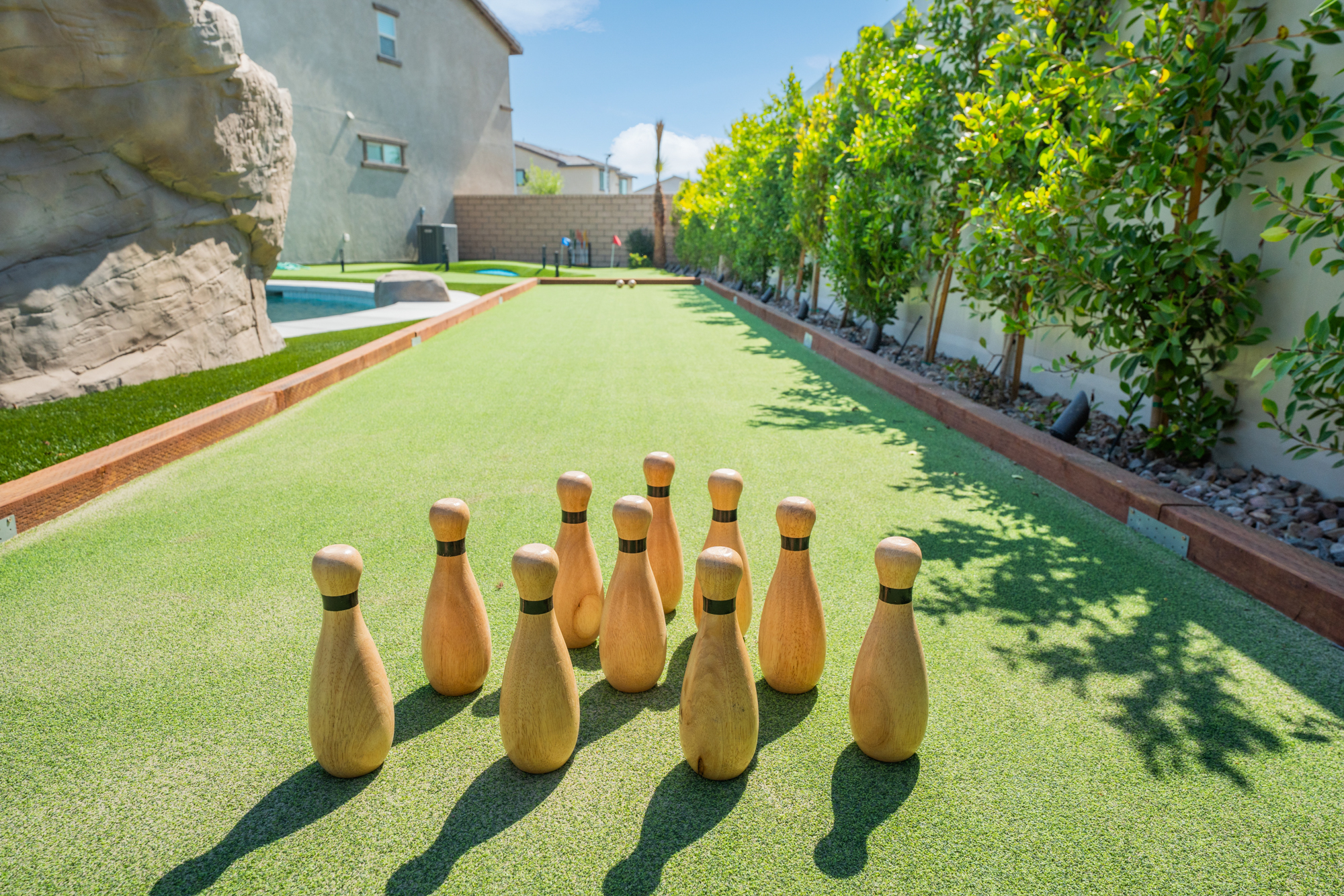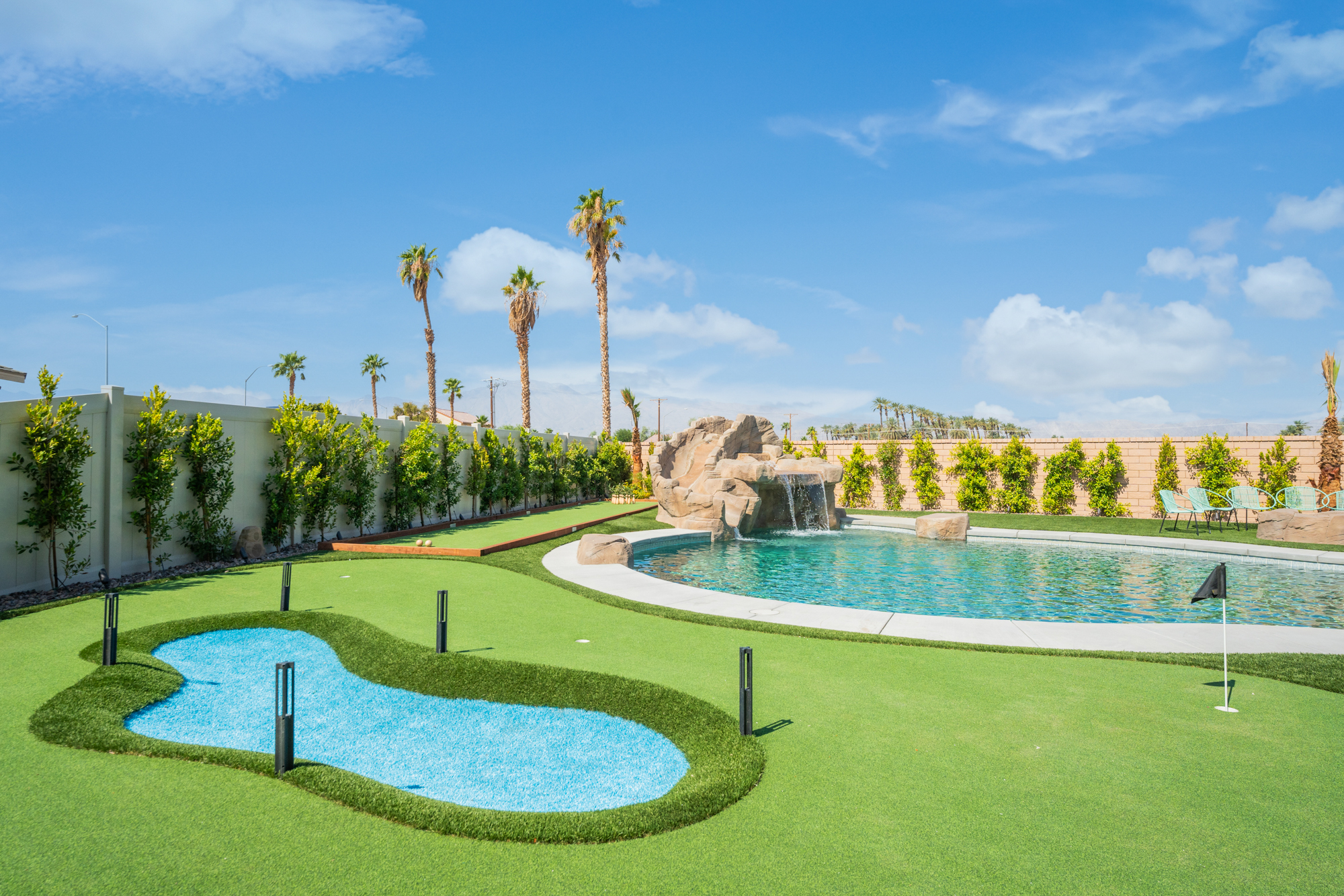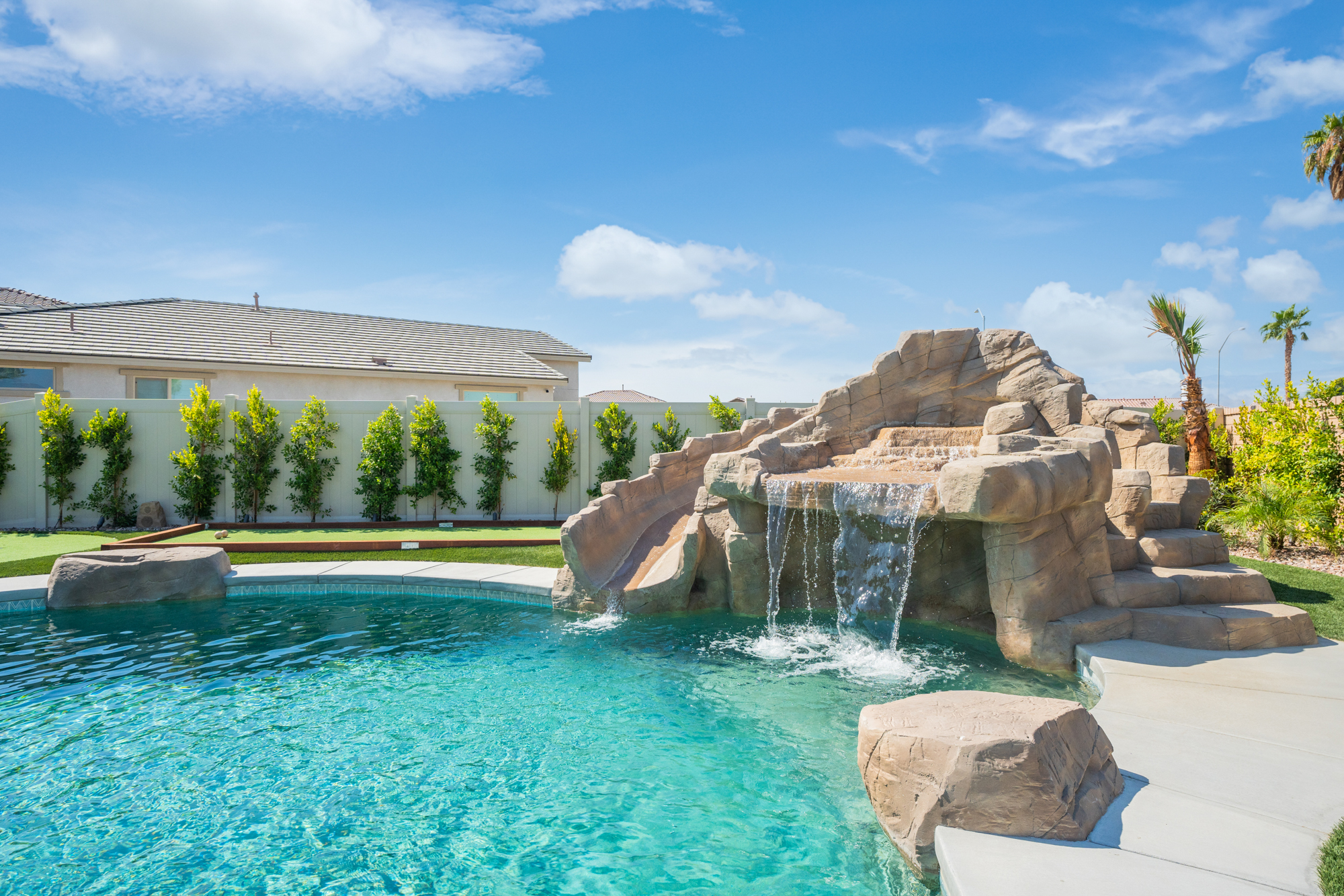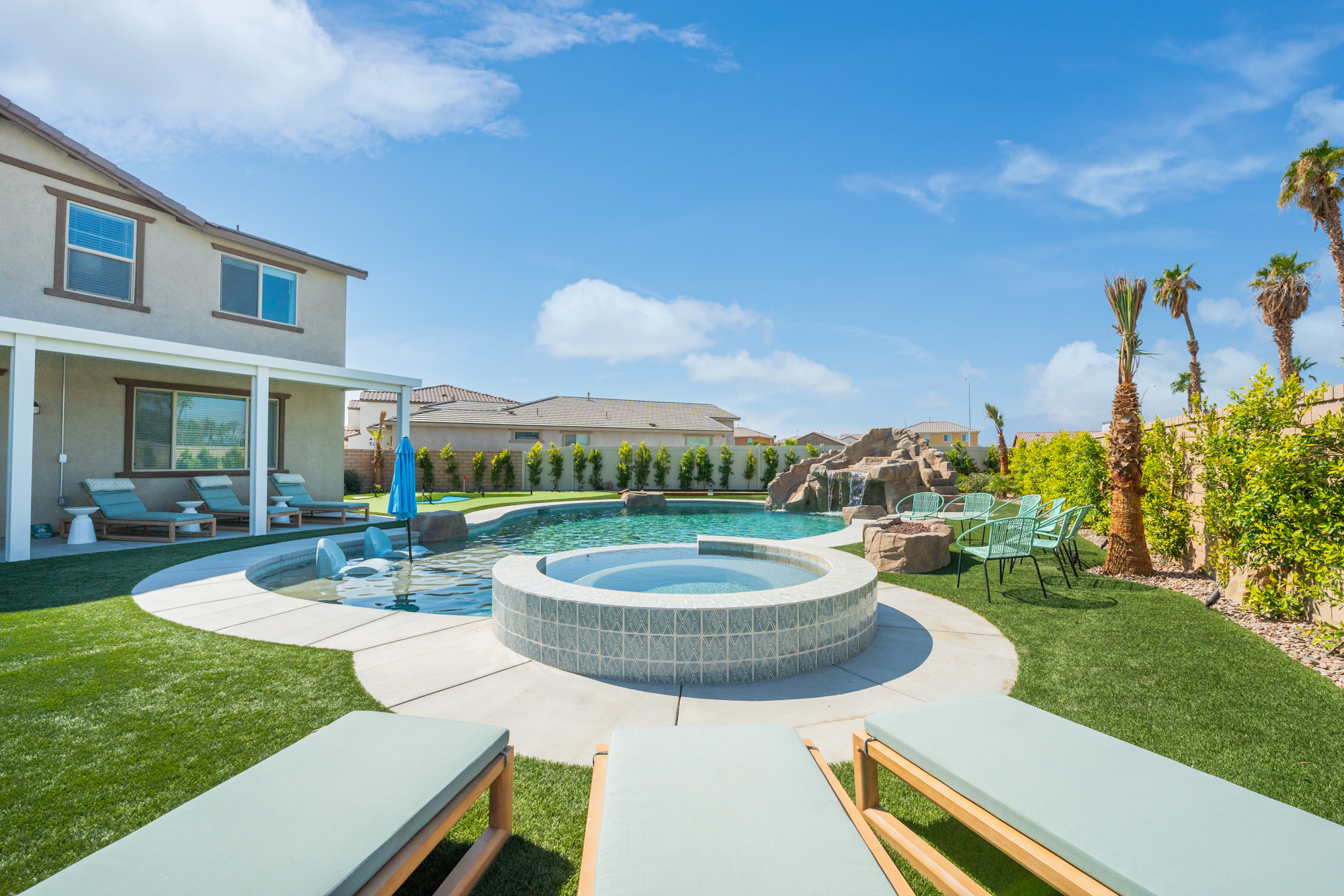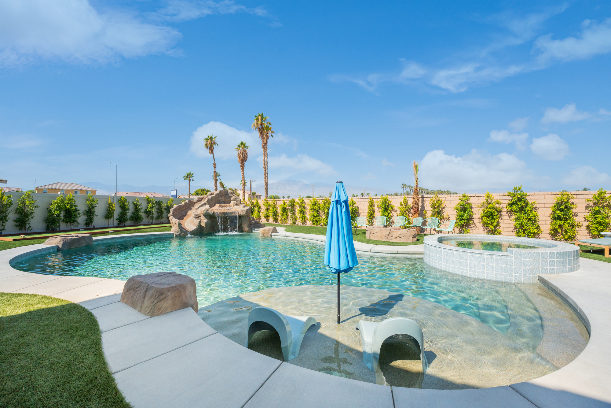 Welcome to Rockslide! Immerse yourself in luxury with a resort-style backyard, oversized pool, spa, and thrilling rock slide grotto. Enjoy 9-hole miniature golf, arcade games, and TVs in every room. Create culinary masterpieces in our fully stocked chef's kitchen. Game room in garage has AC. Have fun with pool and ping pong tables, and savor your mornings with Nespresso and Keurig machines. Your ultimate vacation experience awaits at Rockslide! Designed by Designs by Renee.Notes