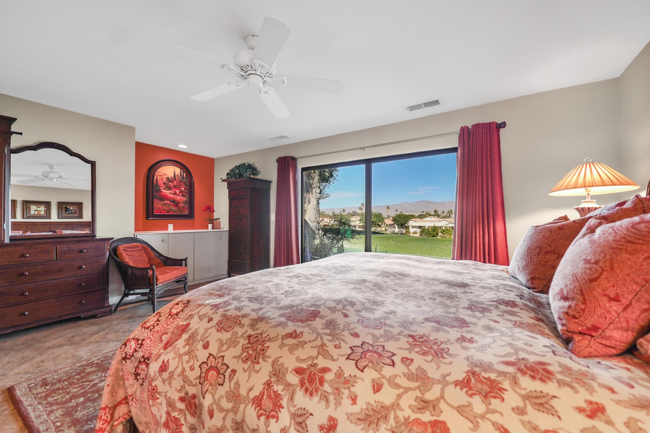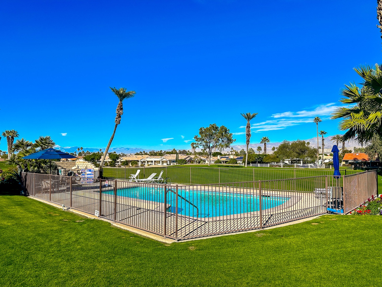 Nestled in the heart of Bermuda Dunes Country Club, this peaceful retreat offers stunning mountain views and overlooks the lush fairways. With 2 bedrooms and 2 bathrooms, the peaceful living space is designed for relaxation. Unwind on the spacious patio, soak in the beauty of the desert landscape, or enjoy a quiet evening under the stars. With access to the community pool and spa, this tranquil getaway offers the perfect blend of comfort and serenity, just minutes from dining and attractions.Location
